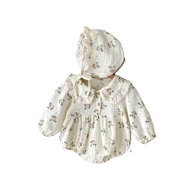 Blommig Babyromper med Hatt – Mjuk Bomull